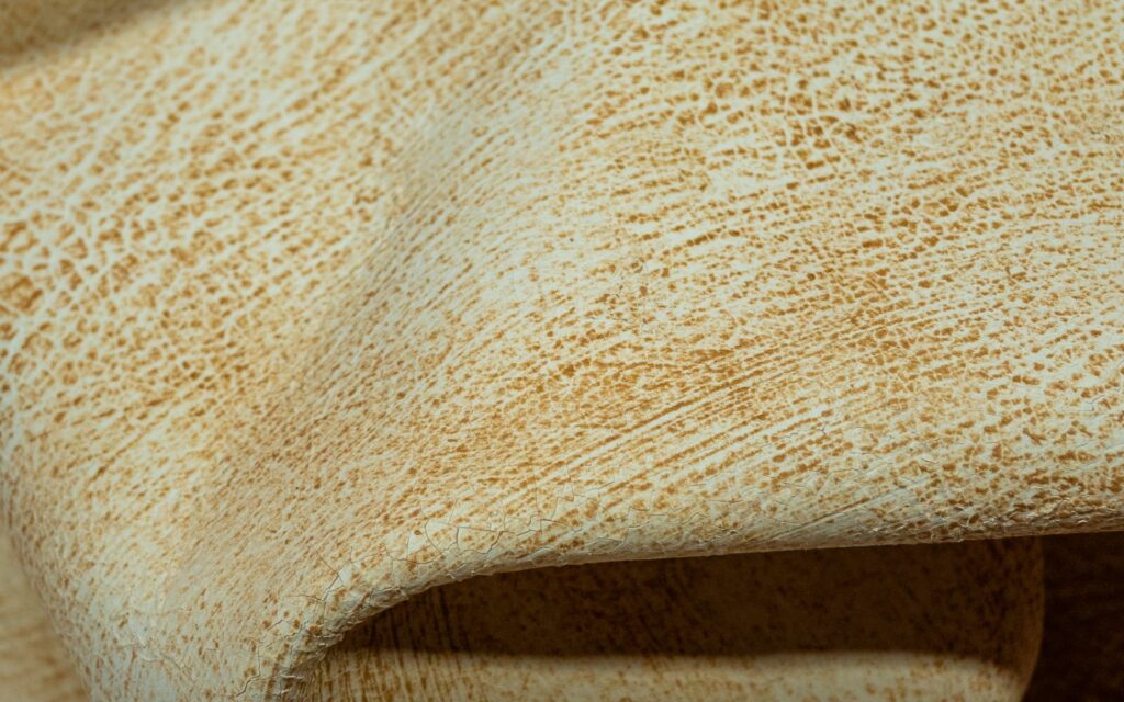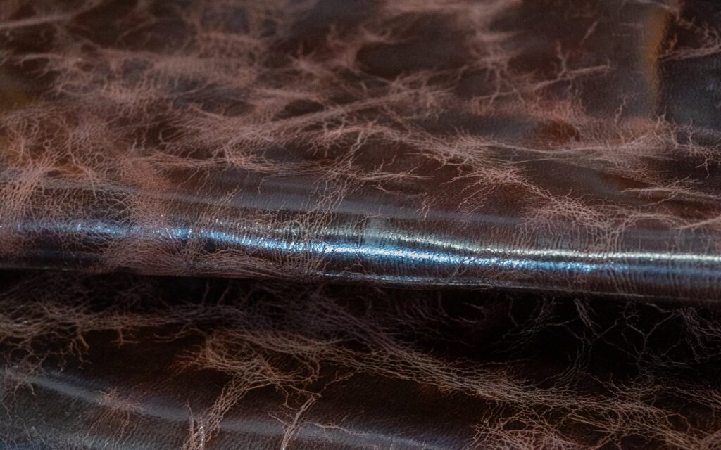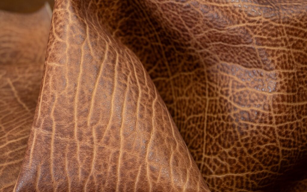 Cuero vegetalizado con suavidad media, con efectos y tactos a base de ceras y aceites.