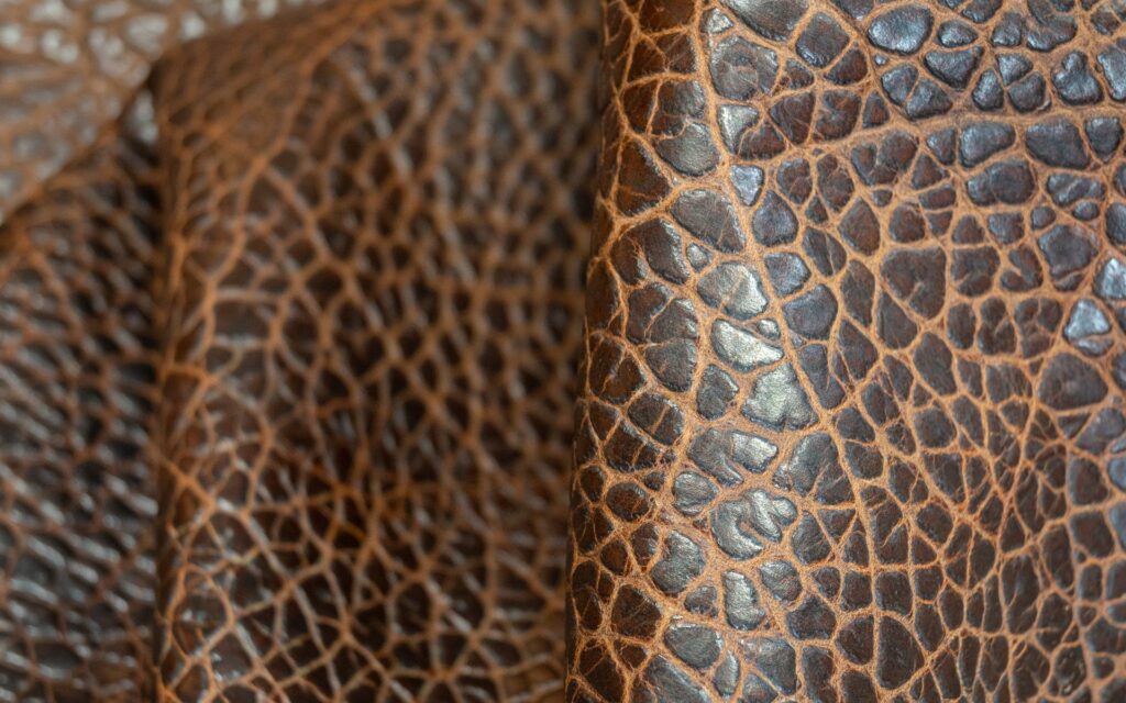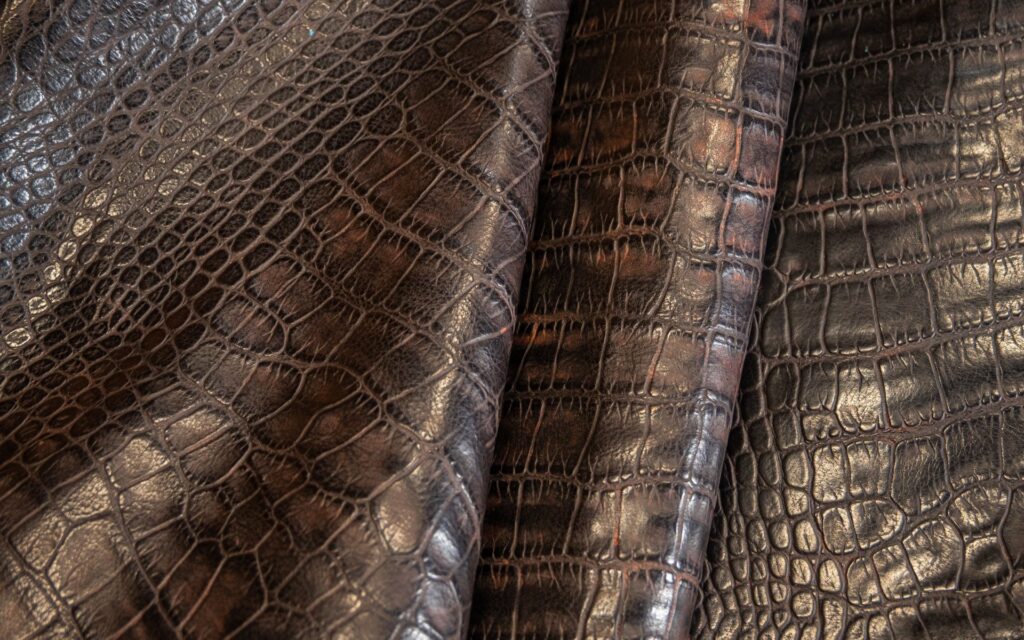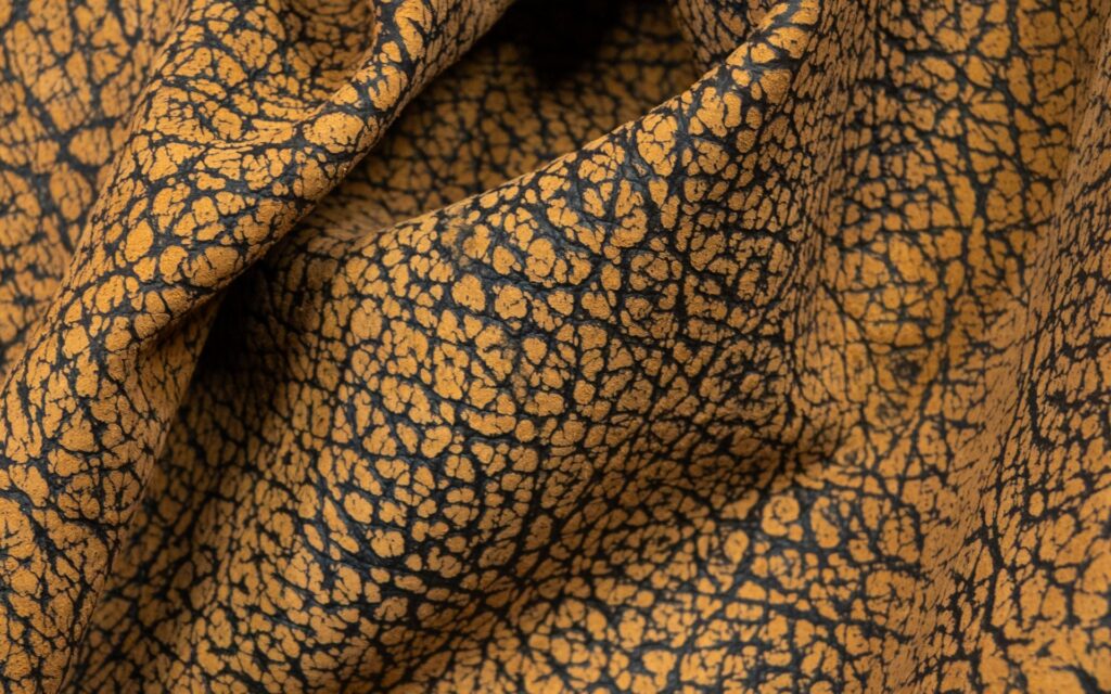 Cuero con diversos patrones que asemejan animales exóticos o formas diversas.
