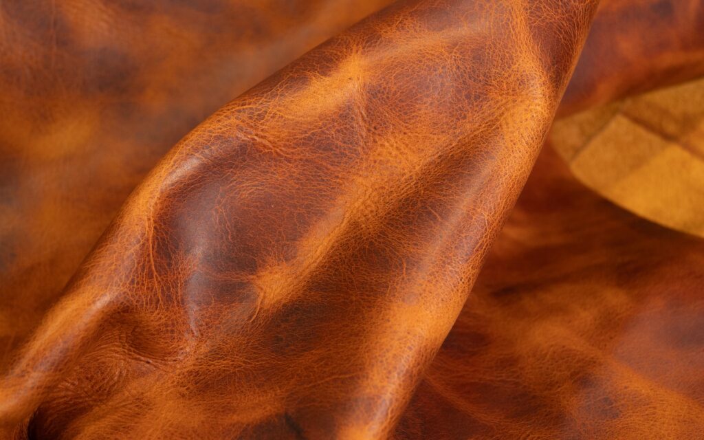 Cueros con graneado natural de cuerpo medio a suave, con acabados semianilina, grasos, cerosos y efectos de contraste.